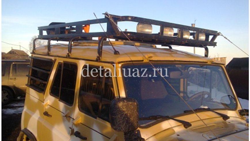 Багажник УАЗ 469, Хантер “Сахалин” 8 опор. С кронштейном креп. галогенных фар, доп. стоп сигналов и с кронштейном крепления веткоотсекателей