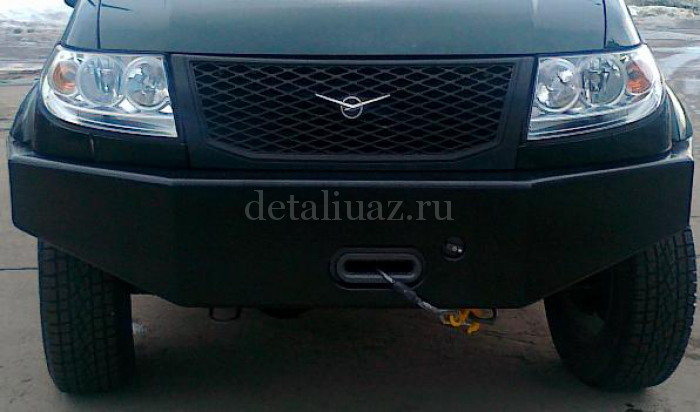 Бампер металлический передний для установки совместно с лебедкой Спрут на автомобили УАЗ семейств 3163 Patriot, Cargo
