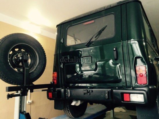 Штатное расположение запасного колеса на двери багажника доставляет владельцам УАЗ Хантер немало хлопот. Даже от веса штатного колеса, спустя какое-то время, начинает провисать «пятая» дверь и перекашиваться при захлопывании. В случае если запасное колесо увеличенного размера, соответствующее основному комплекту колес внедорожника, то процесс этот происходит еще быстрее. Усиливать родные петли практически бесполезно, поэтому единственным вариантом решения данной проблемы является установка калитки и перенос на неё запасного колеса со штатного места.